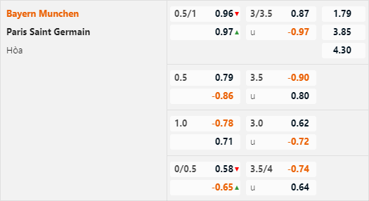 Hiện tại Bayern Munich đang có tỷ lệ chấp 3/4 trên sàn châu Á. Đây là mức chấp cao nếu so với trận đấu tương tự gần nhất, cuộc đối đầu ở mùa giải 2020/2021 Bayern Munich chỉ có tỷ lệ chấp 1/2 khi có lợi thế sân nhà và họ thậm chí còn thất bại với tỷ số 2-3. Với mức chấp cao trận này có thể thấy giới chuyên môn đang đánh giá cao khả năng thắng của đội chủ nhà.