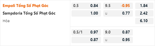 Tỷ lệ tài xỉu phạt góc của trận đấu đang được duy trì ở mức tương đối thấp là 9 hoà. 5 trận đối đầu gần nhất của hai đội đều đã kết thúc với ít nhất 9 tình huống phạt góc được ghi nhận. 3 trận đấu gần nhất của Empoli cũng có kết quả tương tự.