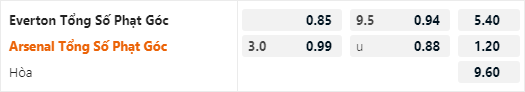 Tỷ lệ tài xỉu phạt góc của trận đấu đang được nhà cái duy trì ở mức 9 1/2 và điểm ăn tương đối cân bằng ở 2 cửa, mức tài xỉu này không có gì bất thường. Theo thống kê đối đầu thì có tới 3/4 trận gần nhất đã kết thúc với ghi nhận ít nhất 10 tình huống phạt góc. 3 trận gần nhất của Everton cũng có kết quả tương tự.