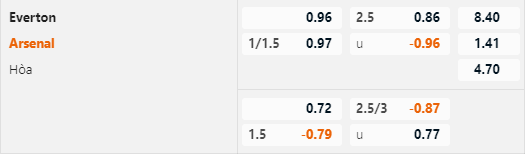 Hiện tại Arsenal đang có tỷ lệ chấp 1 1/4 trên sàn châu Á, đây là mức chấp rất cao của đội khách khi trận đấu tương tự của mùa giải trước các pháo thủ chỉ có tỷ lệ chấp 1/4. Nhưng mức chấp này hoàn toàn hợp lý so với phong độ hiện tại của hai đội. Everton có kết quả tốt trong lịch sử đối đầu khi thắng cả 2 lần tiếp đón Arsenal gần nhất.