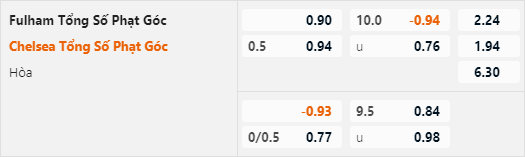 Tỷ lệ tài xỉu phạt góc của trận đấu đang ở mức 9 1/2. Đây là mức tài xỉu tương đồng với mặt bằng chung của giải đấu và không có bất thường. Theo thông kê đối đầu thì 6 cuộc đối đầu gần nhất của hai đội đã đều ghi nhận ít nhất 9 tình huống phạt góc 1 trận, rất có thể trận đấu này cũng không phải ngoại lệ khi đội cửa trên Chelsea được dự đoán sẽ gặp nhiều khó khăn trận này.
