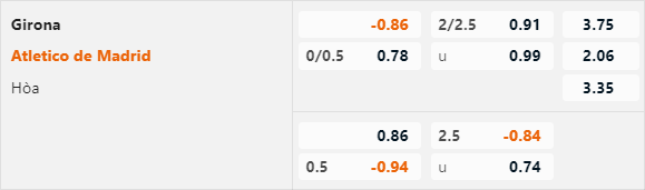 Tỷ lệ tài xỉu của trận đấu được công khai ở mức 2 1/4 và điểm ăn tương đối cân bằng ở 2 cửa. Điểm đáng chú ý là 2 cuộc đối đầu gần nhất diễn ra trên sân của Girona đều kết thúc với 2 bàn thắng được ghi.