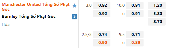 Hiện tại lối chơi của Burnley cũng đem lại tương đối nhiều tình huống phạt góc, cụ thể 5/7 trận gần nhất của đội khách đã ghi nhận ít nhất 10 tình huống phạt góc 1 trận. Trong khi 4 trận đấu gần nhất của Man Utd cũng không có trận đấu nào ghi nhận dưới 8 tình huống phạt góc. Với dự đoán trận đấu sẽ diễn ra sôi nổi và lối chơi hiện tại của hai đội thì lựa chọn cửa tài phạt góc sẽ là một lựa chọn hợp lý.