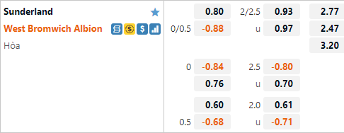 Hiện tại đội khách West Brom đang được nhà cái châu Á đánh giá ở cửa trên với tỷ lệ chấp 1/4 và mức điểm ăn bỏ. Có thể thấy giới chuyên môn đang đánh giá rất cao khả năng của đội khách bởi West Brom đang đứng ở top cuối BXH trong Sunderland có lợi thế sân nhà và duy trì vị trí thứ 11. Lịch sử cũng đang đứng về phía Sunderland khi họ bất bại cả 4 lần tiếp đón West Brom gần nhất. Rõ ràng với mức chấp 1/4 của đội khách lần này thì lựa chọn cửa trên sẽ là một lựa chọn hoàn toàn phù hợp.