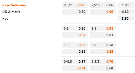 Nhưng việc nhà cái đưa ra mức chấp tương đối cao của đội chủ nhà trận này đang tạo ra không ít ngờ trong giới đầu tư. Với mức chấp này nhiều khả năng Vallecano sẽ có một trận đấu dễ dàng. Nhưng rõ ràng với phong độ hiện tại Almeria cũng sẽ tạo ra không ít khó khăn cho đội chủ nhà. Lựa chọn cửa xỉu trận này sẽ là một lựa chọn đáng lưu ý với mức tài xỉu chỉ 2 1/4, rất có thế đấy sẽ là một chiến thắng nhọc nhằn của đội chủ nhà.