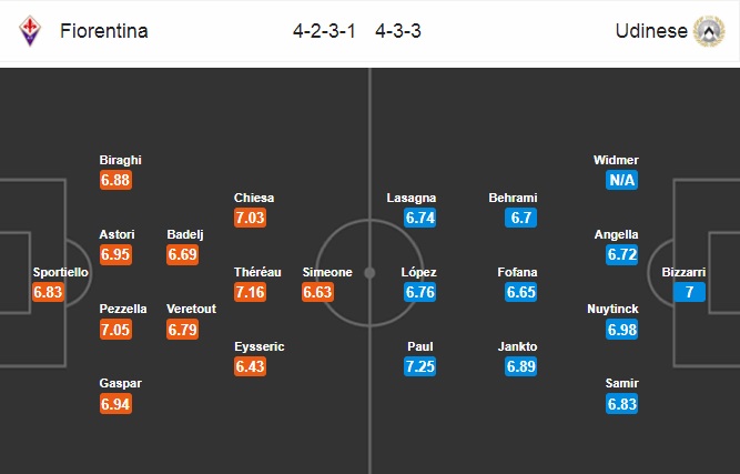 Fiorentina: Saponara (1/0 tiền vệ), Dias (7/1 tiền đạo)
