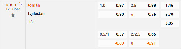Tỷ lệ kèo Jordan vs Tajikistan