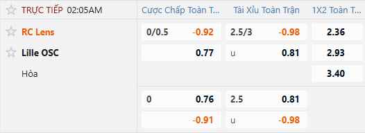 Tính trên mọi đấu trường, Lille bất bại 6 trận liên tiếp vừa qua với 4 chiến thắng và 2 trận hòa. Tính theo kèo handicap họ thắng 5, hòa 1 trong 6 trận đấu đó. Chạm trán Lens, Lille còn có được sự tự tin nhờ thành tích đối đầu thuận lợi. 3 lần đọ sức gần nhất với Lens, Lille đều giành chiến thắng.