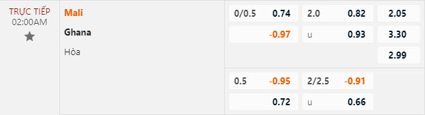 Tỷ lệ kèo Mali vs Ghana
