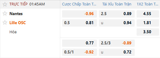 Trong 11 trận đối đầu gần nhất giữa Nantes và Lille, có đến 9 trận két thúc với không quá 2 bàn được ghi. 5/7 trận từ đầu mùa của Nantes cũng có các kết quả tương tự. Nó khiến cho kèo Xỉu trận đấu này trở nên sáng giá.