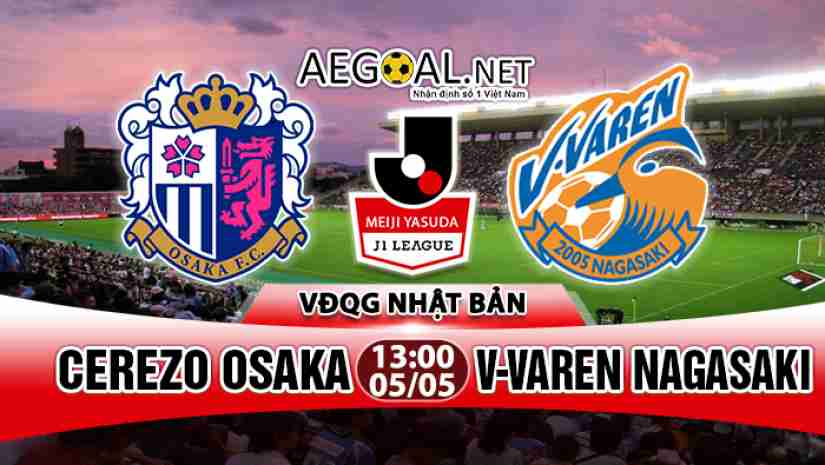 Dự đoán, nhận định, soi kèo Cerezo Osaka vs V-Varen Nagasaki (Vòng 13 VĐQG Nhật Bản). Chỉ tiếp đón tân binh V-Varen Nagasaki chưa để lại nhiều dấu ấn chuyên môn, Cerezo Osaka dự báo sẽ không khó khăn để có chiến thắng.