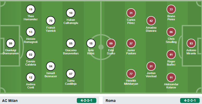 Bảng kèo và thông tin lực lượng trận AC Milan vs AS Roma (22h15)