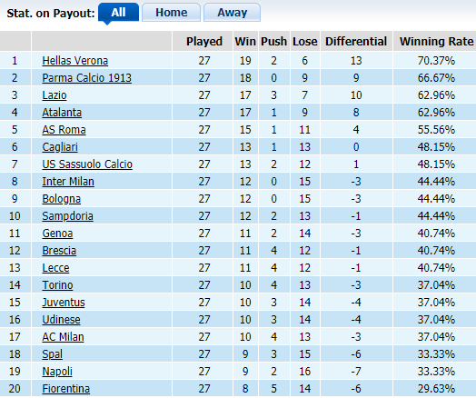 Xét về khía cạnh chỉ số châu Á, AC Milan cũng không phải là địa chỉ đáng tin cậy. CLB này chỉ có 37,04% tỷ lệ thắng kèo từ đầu mùa, đứng tận thứ 17 trên BXH kèo. Còn với AS Roma, họ xếp thứ 5 về khả năng thắng kèo, với tỷ lệ 55,56%. Nhìn chung là từ đầu mùa thì CLB thủ đô tỏ ra đáng tin hơn so với đội bóng áo sọc đỏ đen thành Milan.