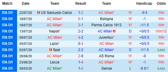 Tuy vậy thì 10 vòng gần nhất, AC Milan lại tỏ ra đáng tin cậy hơn với 8 trận thắng kèo và thua tỷ lệ 2 lần. Cùng quãng thời gian đó, Atalanta có 6 lần vượt rào cản handicap và 3 trận họ thua kèo. Ở 10 lần chạm trán mới nhất giữa đôi bên thì AC Milan thắng kèo 4 trận còn con số đó bên phía Atalanta là 6.