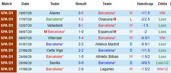 Ở 10 trận gần nhất, nếu như Barca thắng kèo 3 và thua tỷ lệ tới 7 lần thì Napoli thắng kèo 4, hòa kèo 1 và thua kèo 5 lần. Trong lịch sử, đôi bên từng chạm trán 5 lần nhưng có tới 4 là giao hữu, trận lượt đi là trận chính thức duy nhất 2 đội gặp nhau và khi ấy Napoli thắng kèo. Ở 4 trận giao hữu còn lại, Barca thắng kèo 3 lần và thua tỷ lệ 1 trận.