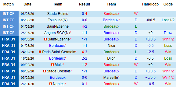 Bảng kèo của Bordeaux