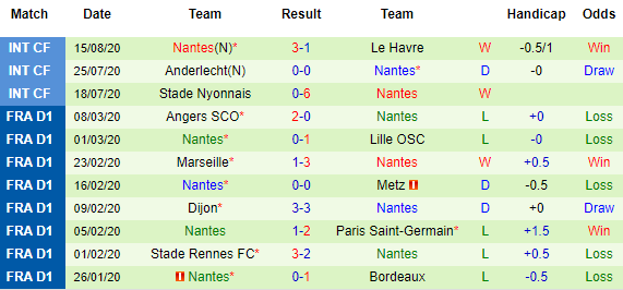 Trong khi đó, 10 trận sân nhà mới đây tại Ligue 1 thì Bordeaux thắng kèo 5 và cũng thua kèo 5 trận. Trong 10 lần đụng độ gần đây giữa đôi bên, Bordeaux thắng chỉ số châu Á tới 7 lần, còn con số đó bên phía Nantes chỉ là 2. Về cơ bản thì tương quan giữa 2 đội khá cân bằng, nhưng Bordeaux tỏ ra nhỉnh hơn đôi chút ở góc độ đối đầu.