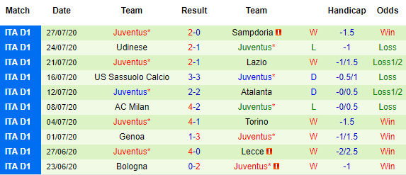 10 vòng gần nhất của Juventus