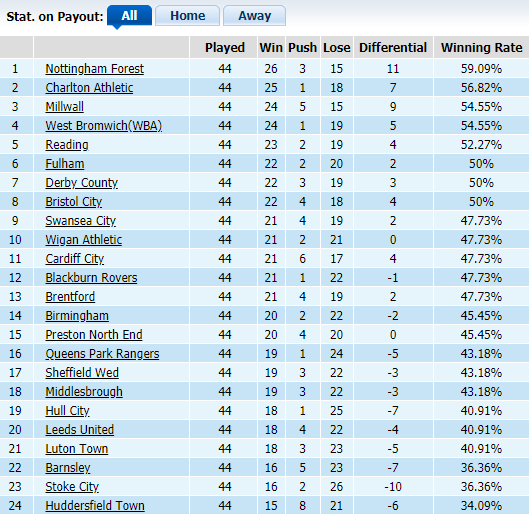 Ở BXH kèo tổng, Charlton đứng thứ 2 với tỷ lệ thắng kèo rất cao, lên tới 56,82%. Trong khi đó, đối thủ Wigan đang đứng thứ 10 ở khía cạnh này với tỷ lệ thắng kèo là 47,73%. Trên sân nhà, Charlton cũng chơi khá tốt và xếp thứ 3 về khả năng làm hài lòng giới đầu tư. Trong 22 vòng sân nhà đã qua, Charlton thắng tỷ lệ 12 trận, tương đương với 54,55%.