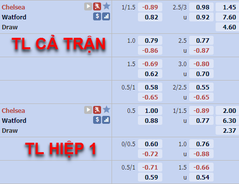 Với lợi thế sân nhà Chelsea được nhà cái đánh giá cao hơn với tỷ lệ chấp 1 1/4 trên sàn giao dịch châu Á. Đây cũng là tỷ lệ chấp thường thấy trong quá khứ đối đầu của hai đội, ở trận đấu tương tự gần nhất Chelsea đã chấp với tỷ lệ 1 1/2 và họ đã không làm thất vọng giới đầu tư khi giành chiến thắng với tỷ số 3-0.