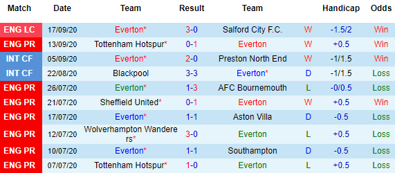 Xét trên khía cạnh đối đầu, 10 trận vừa qua giữa đôi bên chứng kiến việc mỗi đội có 5 lần thắng kèo châu Á. Trong 10 lần tiếp West Brom tại Goodison Park mới đây, Everton chỉ có 3 trận thắng kèo, 1 hòa kèo và 6 lần thua tỷ lệ. Nhìn chung thì nếu xét ở góc độ chỉ số châu Á, Everton chưa hẳn đã nhỉnh hơn đối thủ, nhưng vào thời điểm này thì thực lực của họ lại được đánh giá cao hơn nhiều so với West Brom.