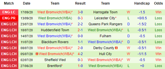 Bảng kèo West Brom