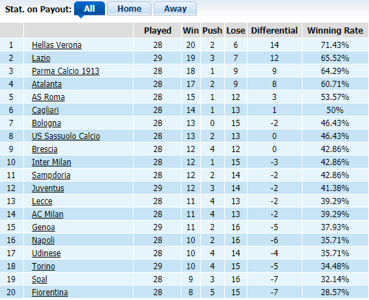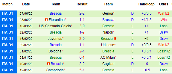 Tuy vậy thì đối thủ Brescia cũng thi đấu khá tệ trên sân khách, và họ chỉ đạt 42,86% tỷ lệ thắng kèo sân khách từ đầu mùa, đứng tận thứ 15. Ở 10 vòng gần nhất, Inter Milan chỉ thắng kèo 2 trận và thua tỷ lệ tới 7 lần trong khi cùng quãng thời gian đó, Brescia thắng kèo 3, hòa kèo 3 và thua kèo 4 trận.