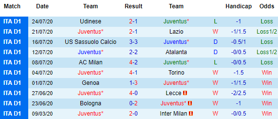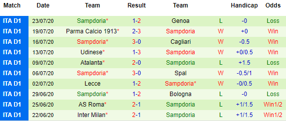 Ở 10 vòng gần nhất, nếu như Juventus thắng/thua kèo 5 trận thì Sampdoria vượt rào cản handicap 7 lần và chỉ khiến giới mộ điệu thất vọng 3 trận. Trong 10 lần đối đầu mới đây giữa đôi bên thì Juventus thắng kèo 4 trận, hòa kèo 3 và thua kèo 3 lần. Nhìn chung thì trên phương diện chỉ số châu Á, "lão bà" không nhỉnh hơn Sampdoria là bao.
