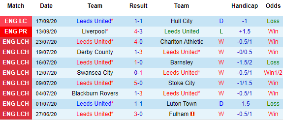Trên phương diện đối đầu, 10 lần gặp gỡ mới đây giữa đôi bên chứng kiến việc Leeds thắng kèo 4, hòa kèo 1 và thua tỷ lệ 5 trận. Ở 6 lần tiếp Fulham trên sân nhà vừa qua, Leeds cũng chỉ vượt qua rào cản handicap 2 lần trong khi thua chỉ số châu Á 3 trận. Dù vậy thì vào thời điểm hiện tại, rõ ràng Leeds được đánh giá cao hơn khá nhiều so với Fulham.