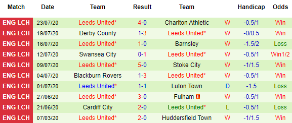 Phía bên Leeds, ở 10 trận sân khách vừa qua thì Leeds Utd thắng kèo 5, hòa kèo 2 và thua tỷ lệ 3 lần. Xét về đối đầu thì thời gian gần đây 2 đội ít chạm trán cho Leeds luôn phải chơi ở cấp độ thấp hơn. Dù vậy thì ở 3 lần gặp nhau mà nhà cái đưa ra tỷ lệ châu Á, mỗi đội có 1 lần thắng kèo và 1 trận hòa kèo.