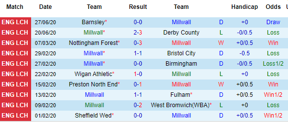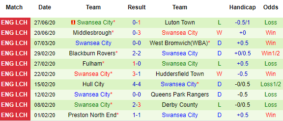 Ở 10 vòng gần nhất, Millwall thắng kèo 4 và thua kèo 5 trận, trong đó 6 vòng mới đây họ chỉ vượt qua rào cản handicap 1 lần duy nhất. Về phía Swansea thì 10 vòng vừa qua họ có 5 lần thắng kèo và cũng thua kèo ngần ấy trận. Lịch sử đối đầu giữa đôi bên cũng khá cân bằng khi 10 lần chạm trán gần nhất, mỗi bên có 5 lần vượt qua rào cản tỷ lệ.