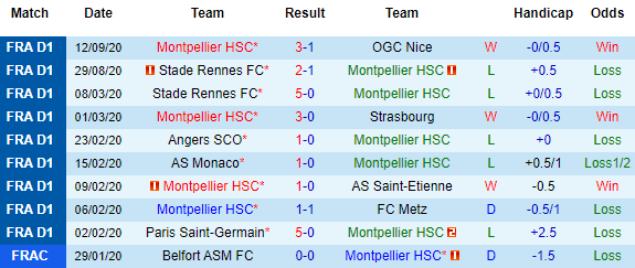 Bảng kèo Montpellier