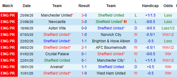Bảng kèo 10 vòng gần nhất của Sheffield Utd