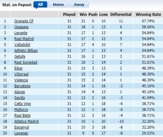 Bảng kèo La Liga