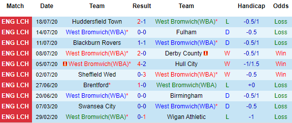 10 trận gần nhất của West Brom