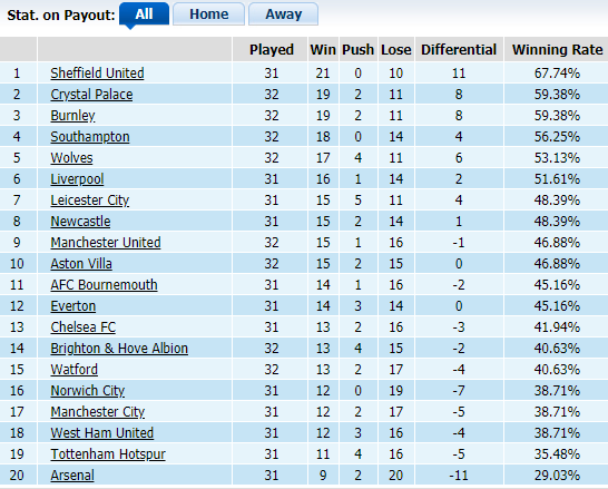 Ở BXH kèo tổng, Chelsea đứng thứ 13 với tỷ lệ thắng kèo là 41,94%. Nhưng họ còn khá hơn so với West Ham, đội chỉ có 38,71% tỷ lệ thắng kèo từ đầu mùa. Thực tế là trước khi mùa giải năm nay khởi tranh, West Ham được đánh giá khá cao nhưng họ chơi chưa đạt yêu cầu và hiện tại còn phải vật lộn với cuộc chiến trụ hạng.