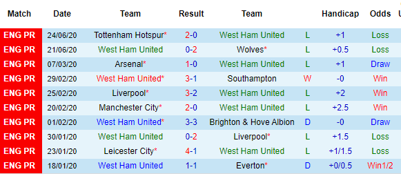 West Ham chơi không tốt ngay cả khi được thi đấu trên sân nhà. Ở BXH kèo sân nhà, West Ham đứng áp chót, chỉ hơn Arsenal. Trong 15 vòng tiếp khách từ đầu mùa, West Ham chỉ có 5 lần vượt rào cản handicap. Trong khi ấy, Chelsea thi đấu không tệ trên sân khách với tỷ lệ thắng kèo là 46,67%, đứng thứ 8.