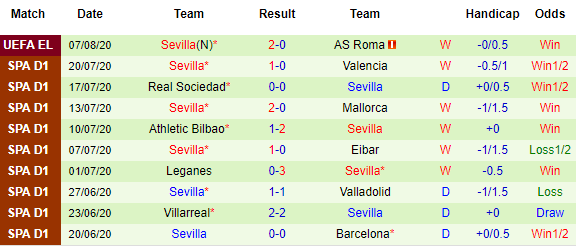 10 trận gần nhất của Sevilla