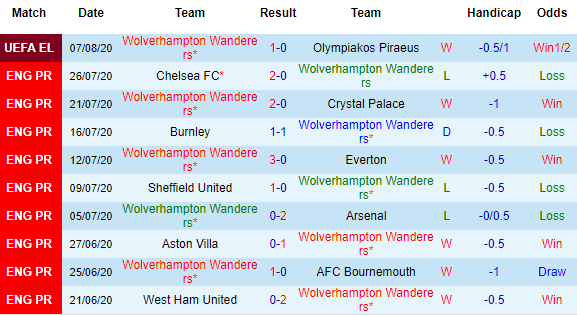 10 trận gần nhất của Wolves
