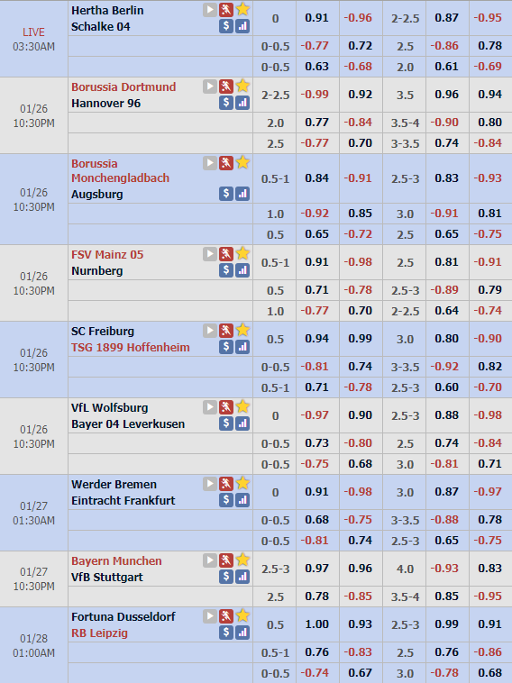Cập nhật lịch thi đấu và tỷ lệ châu Á vòng 19 giải VĐQG Đức ( Bundesliga )