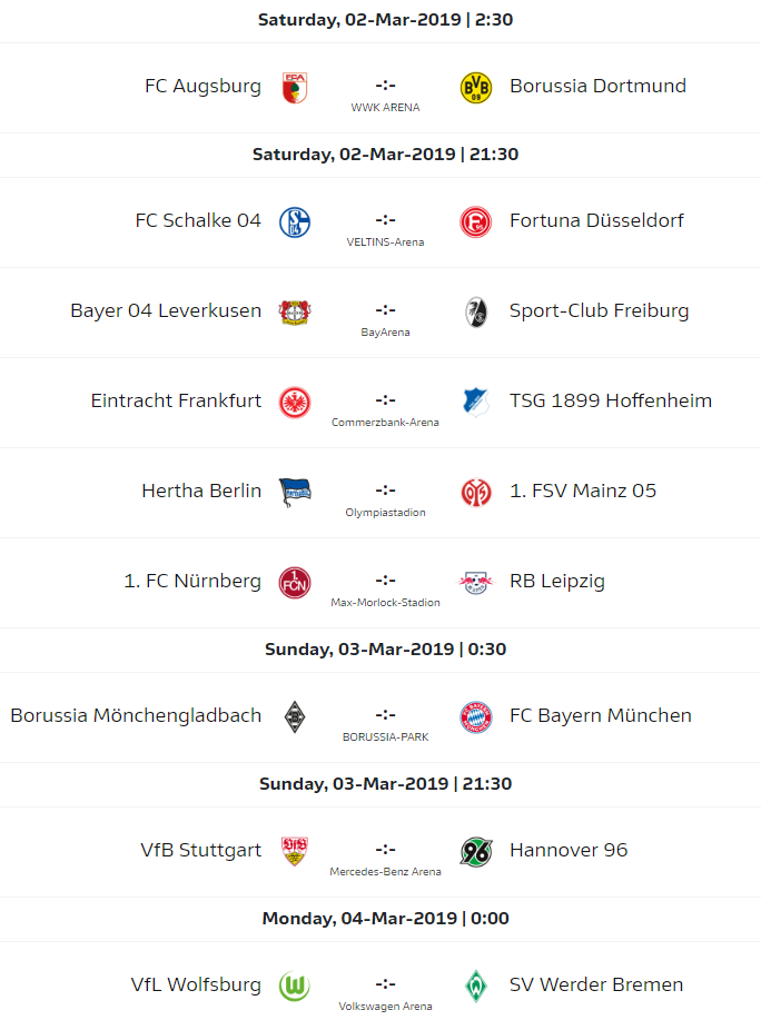 Vòng đấun này đội đầu bảng Dortmund sẽ có chuyến làm khách trên sân của Augsburg. Đội chủ nhà với phong độ không tốt mới chỉ có được 18 điểm sau 23 vòng đấu, tạm giữ vị trí thứ 15 trên BXH. Trong khi đó Dortmund vẫn đang duy trì được khoảng cách 3 điểm trước đội bóng thứ 2 Bayern Munich, đội khách