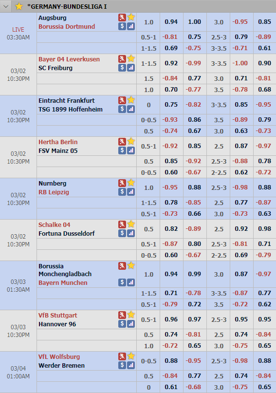 Cập nhật lịch thi đấu và tỷ lệ châu Á vòng 24 giải VĐQG Đức ( Bundesliga )