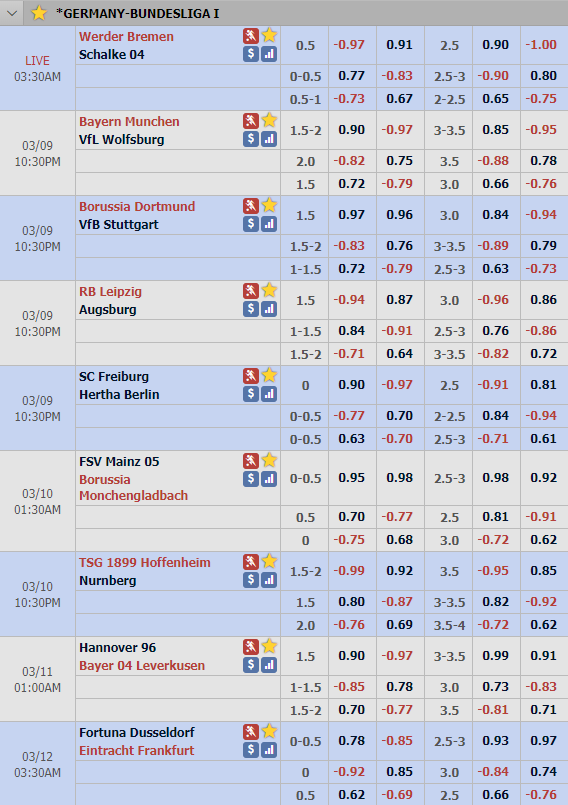 Với lợi thế sân nhà, Bremen được nhà cái châu Á đánh giá là đội cửa trên với tỷ lệ chấp 1/2 trong trận này. Đây là tỷ lệ chấp khả cao của Bremen, thông thường ở những trận đấu tương tự thường xuất hiện tỷ lệ chấp 1/4, với phong độ hiện tại của Schalke thì việc Bremen có kèo chấp cao hơn mức bình thường cũng là điều dễ hiểu. Chỉ số tài xỉu của trận đấu đang được niêm yết ở mức 2 1/2.