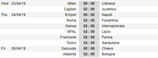 Cùng AEGOAL điểm qua lịch thi đấu, cập nhật tỷ lệ châu Á và một số trận đấu đáng chú ý vòng 30 giải VĐQG Italia ( Serie A )