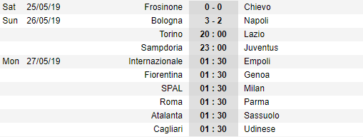 Lịch thi đấu và kết quả vòng 38 giải VĐQG Italia