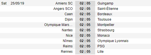 Lịch thi đấu vòng 38 giải VĐQG Pháp