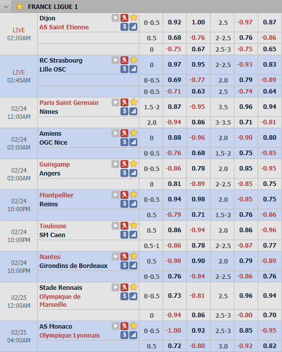 Cập nhật tỷ lệ châu Á vòng 26 giải VĐQG Pháp
