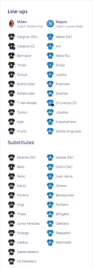 AEGoal cập nhật chính xác Đội hình ra sân trận AC Milan vs Napoli diễn ra lúc 02h00 ngày 13/4/2023 trong khuôn khổ Cúp C1 Châu Âu.