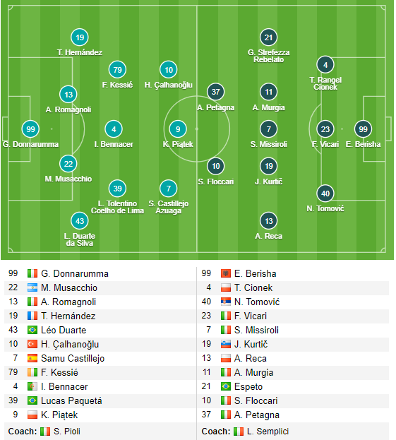 *AC Milan: Leo Duarte nhiều khả năng được giữ vị trí thứ hậu vệ phải trận này sau khi Andrea Conti thể hiện không tốt trong trận đối đầu với Roma vòng trước. Ismael Bennacer, Krzysztof Piatek, Samu Castillejo đều có khả năng đá chính trận này.