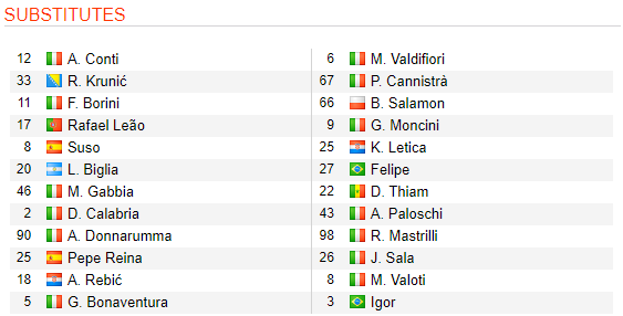 * Danh sách dự bị trận AC Milan vs Spal, 03h00 ngày 01/11: VĐQG Italia